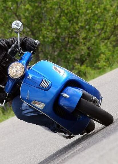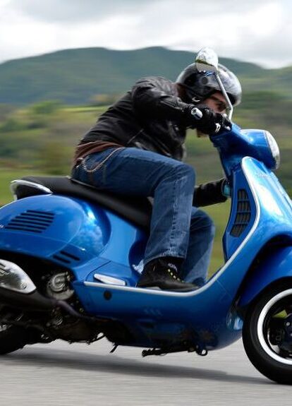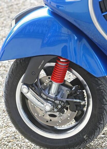 The ASR traction control demonstrated its usefulness many times during the test ride, from leaving the gravel road leading from the hotel to accelerating over dirt littered on the roads. The ASR is pretty intrusive for maximum safety, but it’s okay because we’re talking about a 21-hp Vespa scooter here and not a 150-hp superbike. Under the new front suspension sits a disc brake with dual-channel ABS, backed up by a rear disc brake, which isn’t typical for Vespas. The system is able to stop the GTS with great safety.