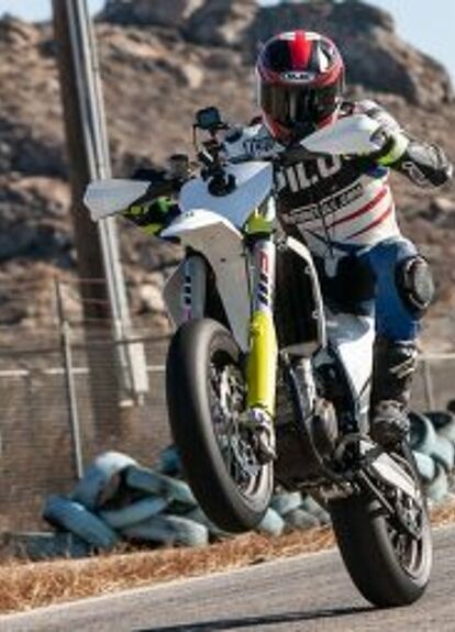 I can't understand why it isn't street legal. I thought most supermotos are ridden on the street, for commuting etc. as a general purpose bike. Making it track-only limits its usefulness. $11K is a rather large chunk of money for a hobby bike. We don't just need more supermoto riders, we need a street legal supermoto bike.