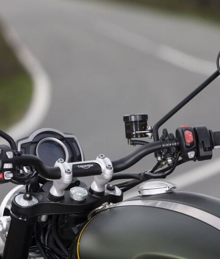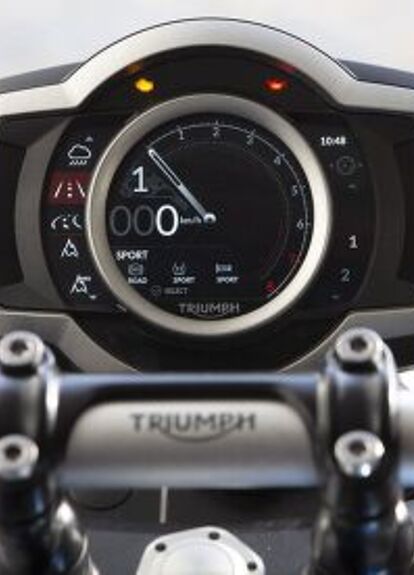 The left and right switchgear buttons are backlit, and the joystick on the left easily navigates the Scrambler’s TFT display, which has adjustable themes and display types to suit any rider’s preference – including options to declutter the amount of information presented at any one time. Auto-contrast is also selectable in order to let the screen adjust to ambient lighting.
