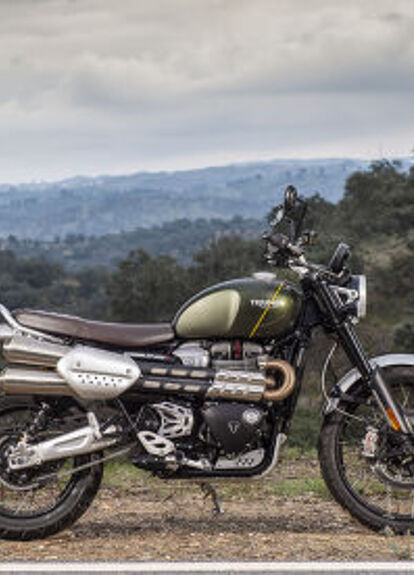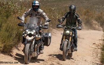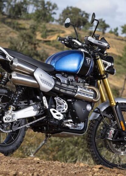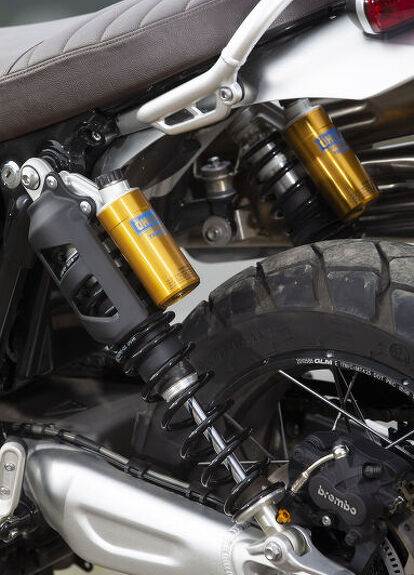 Both Scrambler 1200s come with Metzeler Tourance rubber as stock fitment, however, should you plan to scramble, Pirelli Scorpion Rally is available as a factory option and worked quite well during our off-road day. Both models use tubeless side-laced wheels with 90/90-21 front tires and 150/70-17 sized rubber in the rear. If I want to nitpick, one could argue Triumph could have used an 18-inch wheel in the rear for extra off-road prowess and to open up tire choices. The 17” is just fine for scrambling but an 18-inch wheel may help over obstacles: if you plan on riding up and over boulders, there are probably better bikes for it. We’re told the 17-inch wheel was a compromise to keep the Scrambler street friendly, and realistically, there are a number of great ADV-type tires for 17-inch wheels these days anyway.