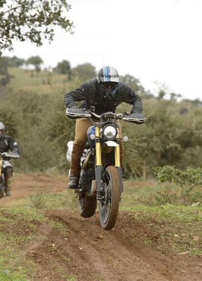 After learning about the two new Scrambler 1200s the night prior, our first wave of editors had the pleasure of spending the next day on the XC and XE models off-road, on and around Wim Motors Academy in Boavista dos Pinheiros, Portugal, a training school for rally-type off-road riding, roadbook navigation, and general training facility for all sorts of riders from Dakar racers to the Portuguese ISDE team. To say we were excited would be an understatement.
