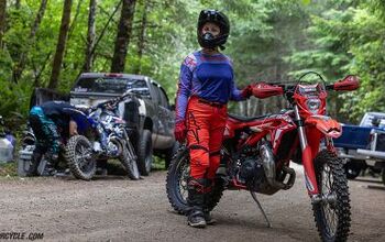 When it comes to flipping these two onto their sides into corners, the lower center of gravity (seat heights are 33-inches for the XC and 34.25-inches for the XE), steeper 25.8-degree rake, and shorter wheelbase give the XC the upper hand. That’s not to say the XE is slow, even with its 26.9-degree rake and 61.8-inch wheelbase (1.5-inches longer than the XC). Some even preferred the XE for its higher, wider handlebar due to its leverage, but when I was sliding the XC off-road, I preferred it for the sort of slippery hooliganism we were enjoying.