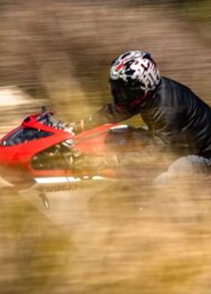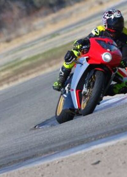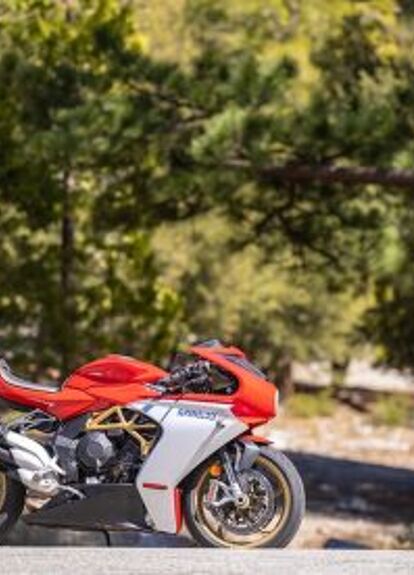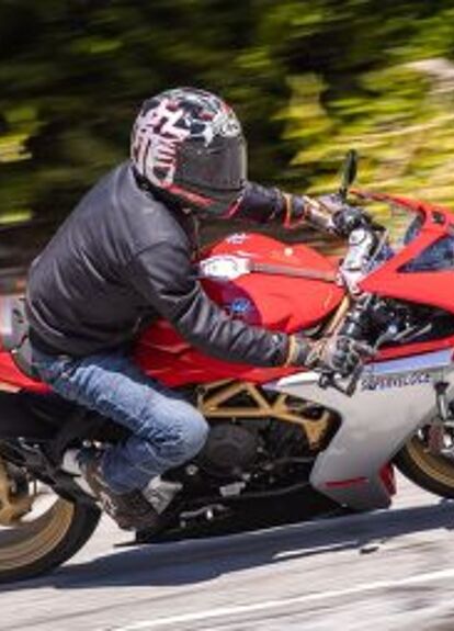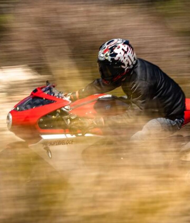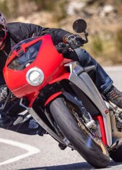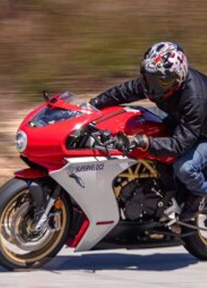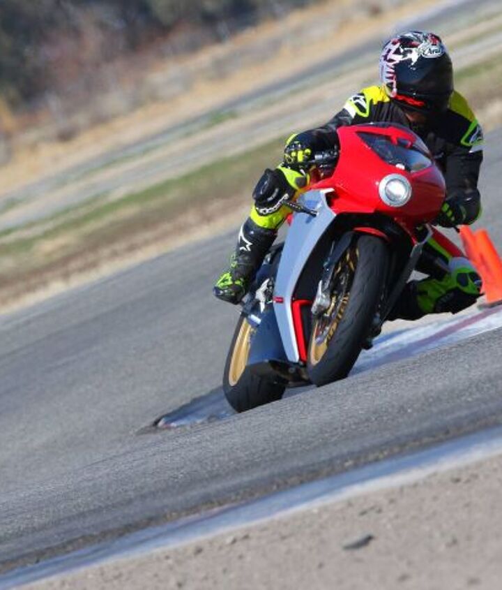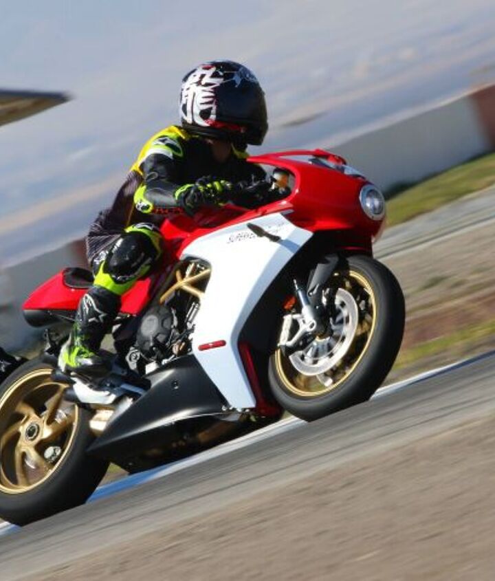 With the underpinnings of the F3 800, the Superveloce’s manners through a corner are sweet. It tips into a corner with ease, on or off the brakes, which is likely helped by the counter-rotating crank. Once leaned over it holds its line and reacts to inputs nicely. This really is a sweet little track bike.