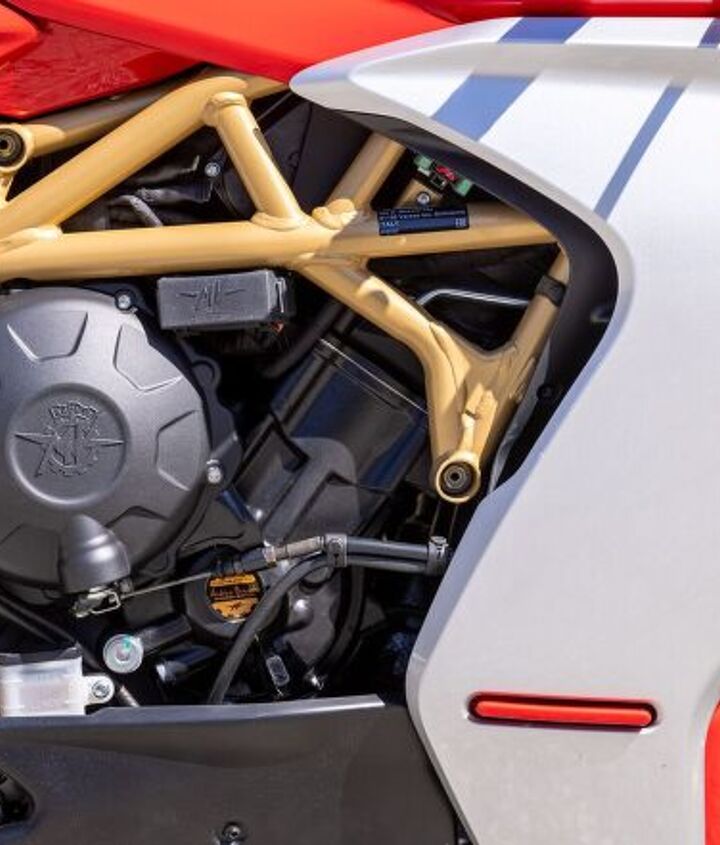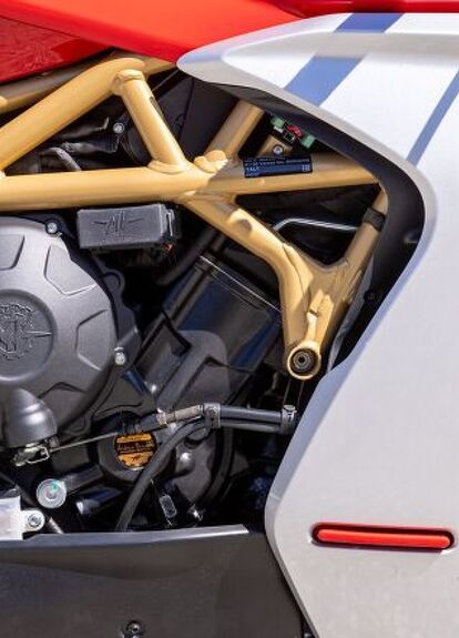 Still, the 798cc Triple is one sweet engine. With 12 valves, six injectors, 13.3:1 compression, a counter-rotating crankshaft, and an oversquare bore and stroke (79 mm x 54.3 mm), MV says it pumps out 148 horses (at the crank) at 13,000 rpm – that’s healthy. Full ride-by-wire means you also get traction control (adjustable to eight levels, and off), four ride modes, and cruise control(!). You also get other electronic goodies like Continental ABS, and a quickshifter in both directions.