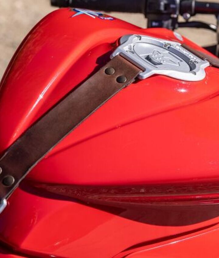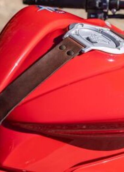 As your eye gazes along, the folds and creases that make up the fuel tank and tail section admittedly look thoroughly modern (some might even say complex), though the leather belt strap atop the tank is a blatant homage to the past. You know, when fuel tanks were actually held on with leather straps. Whether it fits in this context I’ll leave for you to decide.