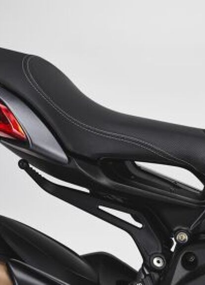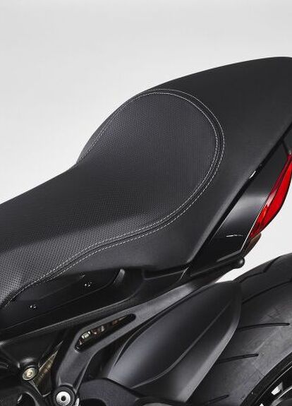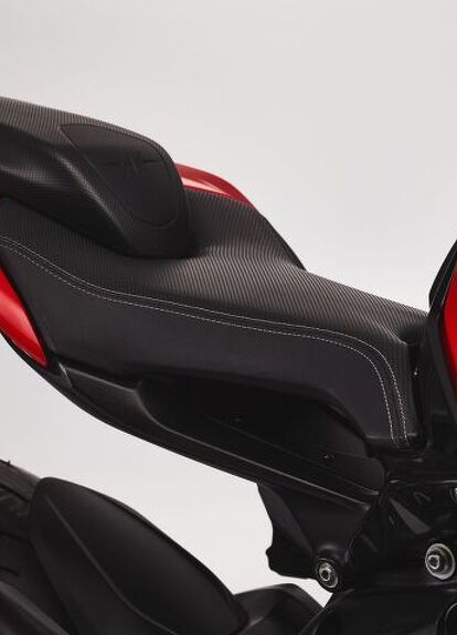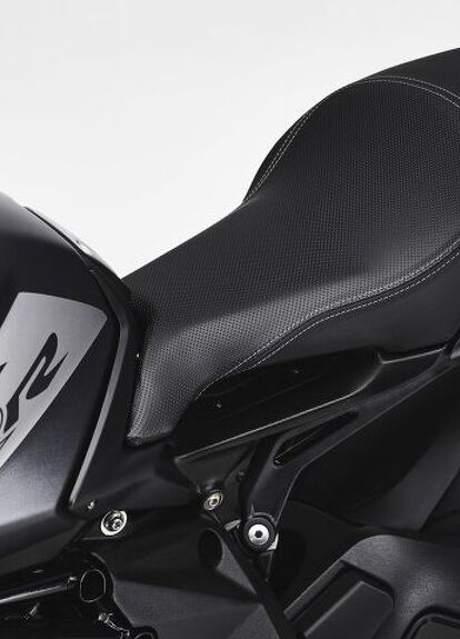 On the chassis side, the frame has new side plates for improved torsional and longitudinal rigidity, while the rear suspension linkage now has a different progression rate. The shock itself gets a new spring and the internal valving is altered. Up front the Marzocchi fork also gets new valving to match the rear. From where the rider sits, literally, there’s new, more comfortable seat foam to better cushion your backside from high-frequency bumps.