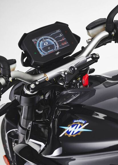 Turning our attention to some electronics we actually can see, there’s now a new 5.5-inch TFT screen. Apart from showing you all the usual information you’re used to seeing in a gauge display, with the MV Ride app it can pair with your phone and record and share your route. It can display turn-by-turn navigation right there on the screen. And now that there’s cruise control on the Brutale, your hands are (momentarily) freed up to check what the next few turns or exits will look like.