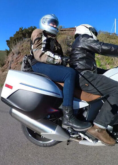 With a passenger and loaded saddlebags, I appreciated the new automatic preload system on the GT, something I never really noticed riding alone on the K1600 B. An extra 200 pounds on the back doesn’t faze the bike at all, which maintains its pitch at all times, even though Road mode serves up a nearly pillowy ride along the mostly straight, sweeping roads we blasted upon to San Simeon.