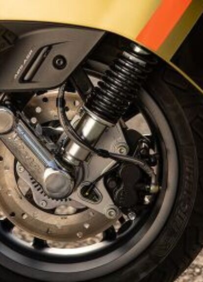 In an environment where traffic laws appear to be merely suggestions, responsiveness is a clear advantage, and the GTS 300, with its 12-in. wheels and low center of gravity fits the bill. With a chassis constructed of sheet steel and the engine on the swingarm, the center of gravity is quite low, despite the 31.1-in. seat height. Still, for the ‘23 model year, the handlebar is wider, and in addition to making the GTS easy to control, the riding position is quite comfortable. Our test route combined extensive urban scooting with a nice afternoon trip out of town for lunch, where we sampled the twisty road handling. Combining the power delivery with the competent handling, I wouldn’t hesitate to take a passenger along in either of these scenarios.