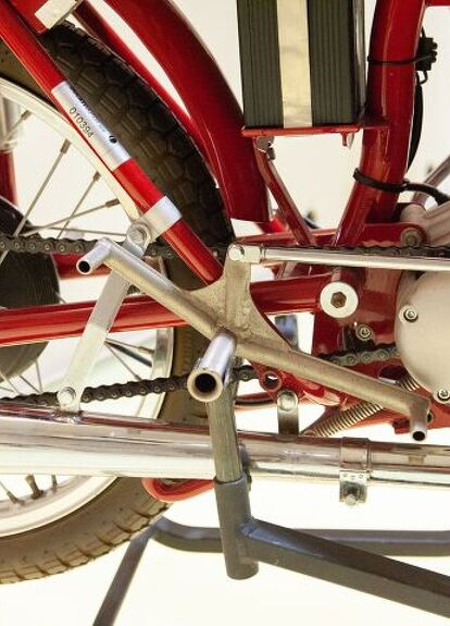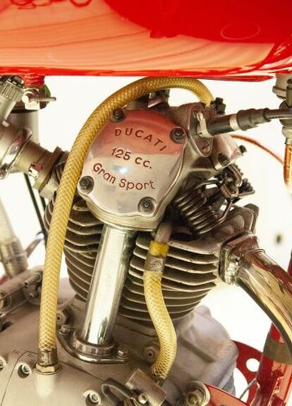 Italy was in shambles after the war. Looking for a way to jumpstart the economy, the brothers Ducati (as well as others) noticed a need for transportation that could take them beyond the confines of their town. Hence, the Cucciolo was born in 1946. It wasn’t, in fact, a motorcycle. The Cucciolo was just an engine. The 48cc single-cylinder four-stroke had two gears, could travel up to 31 mph (50kph) and 62 miles (100 kilometers) on just one liter of fuel. A simple conversion kit allowed it to be retrofitted to a bicycle, creating a cheap, easy, and economical way to move around and rebuild the Italian economy.