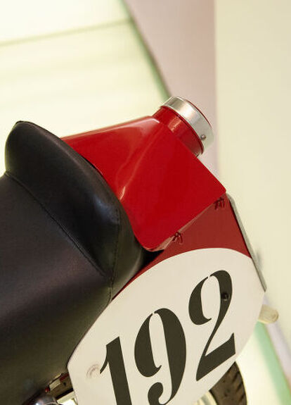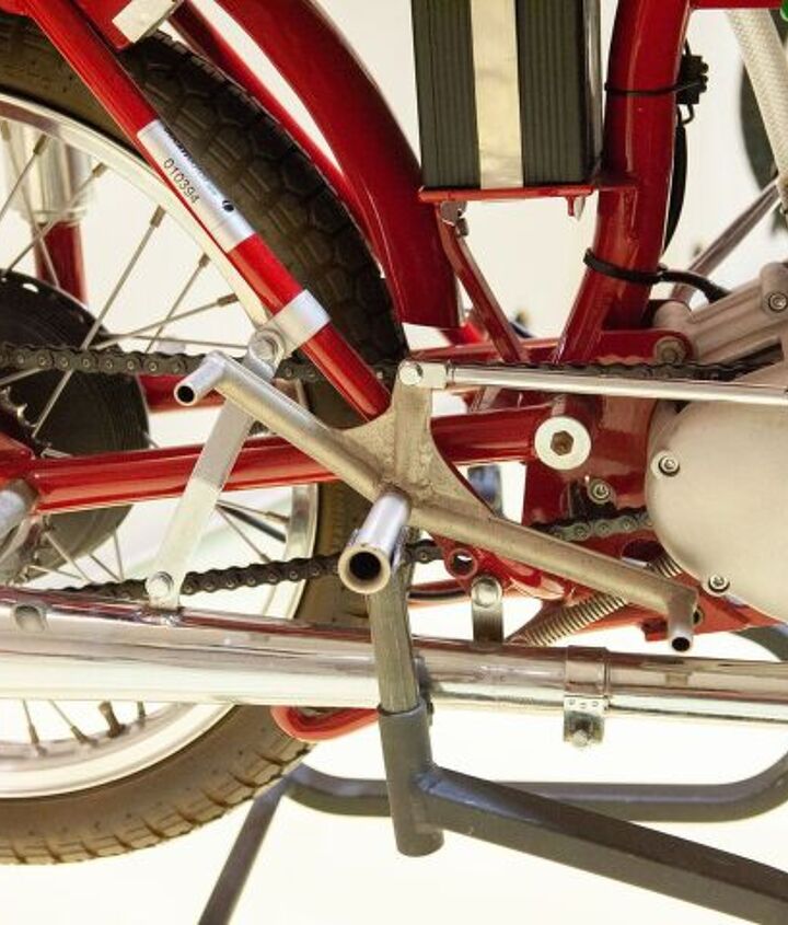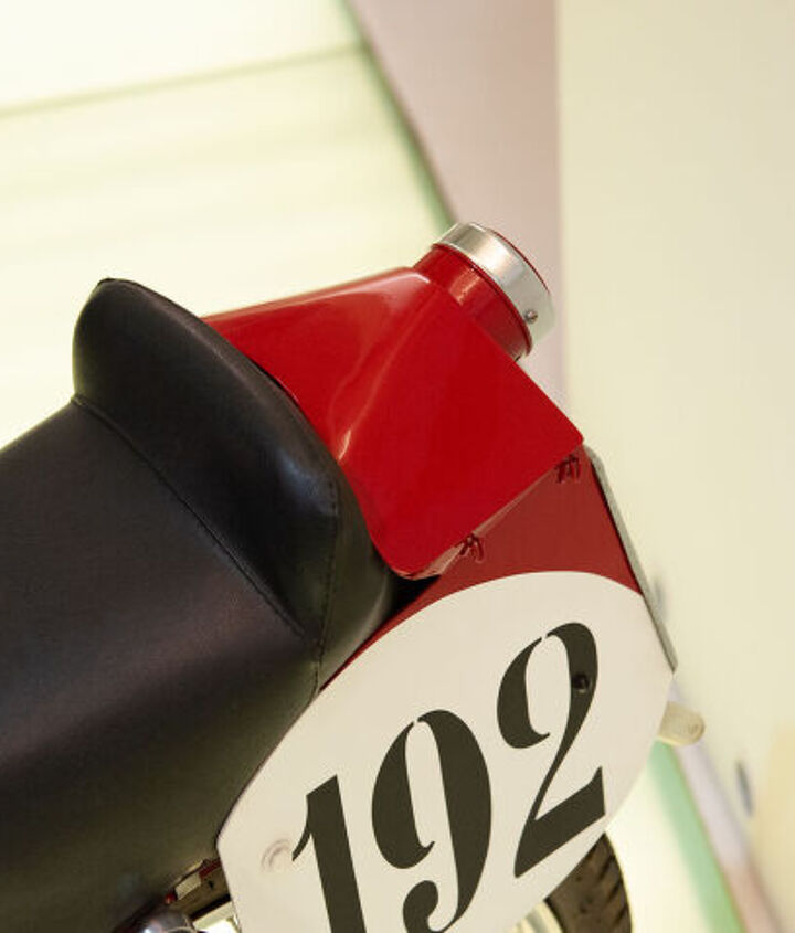 It’s not much, but the little red tail section is actually attached on a hinge and swings open to reveal a tiny compartment to hold small tools, spare valve springs, or any other little object the bike may need to finish the race.