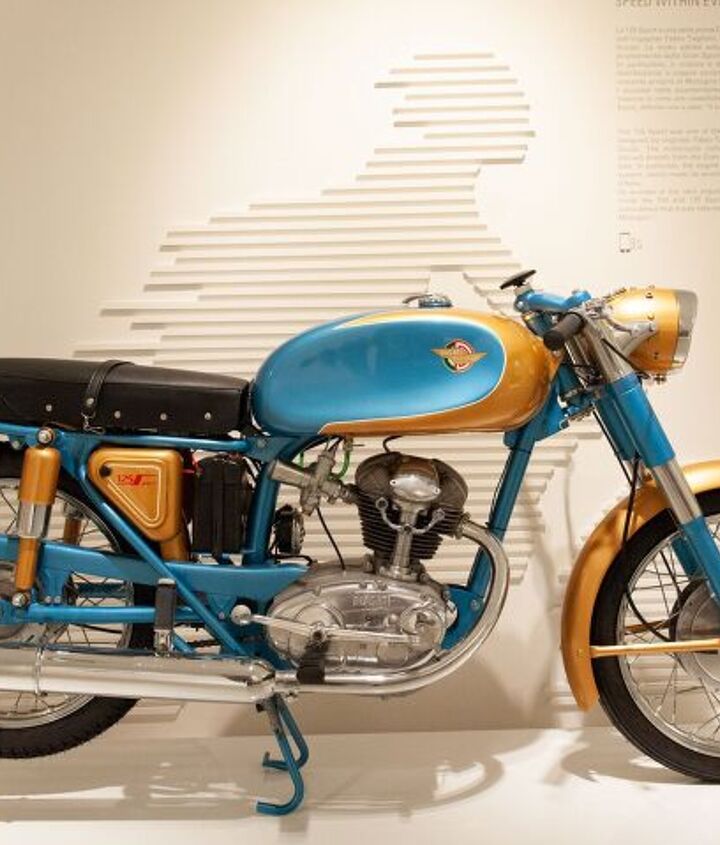 The success of the Marianna left people clamoring for a version they could ride on the roads. Hence the 125 Sport was born in 1957. It incorporated much from the Marianna, like the bevel-drive cam timing. It was also one of the first Ducati street bikes designed by Fabio Taglioni. You could say the 125 Sport is one of the earliest examples of racing influencing road bike design and technology. It certainly set a tone for what was to come for Ducati.