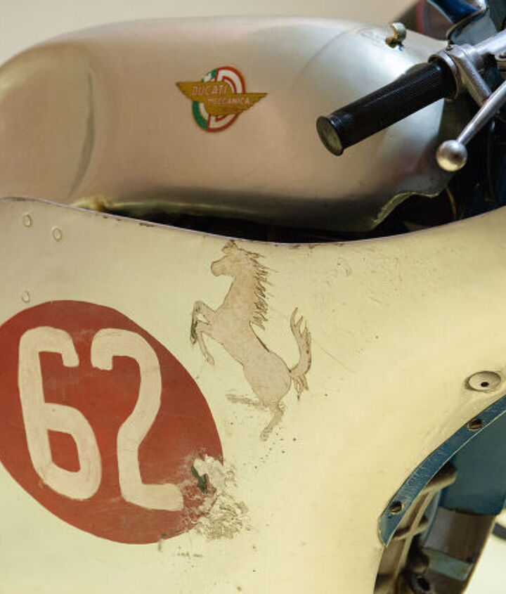 Racing fans, and especially Ducati fans, know the name Hailwood. After his success in 1959, he was becoming the next hot property. But, as Loi tells it, it was rare for Ducati – and Taglioni – to support a non-Italian rider. The story goes Mike Hailwood’s father was friends with Taglioni, and it was through his constant insistence that Taglioni finally agreed to put the younger Hailwood on a new bike – the 1960 250 GP Desmo. Like the 125 GP, the 250 version was also a Taglioni design, thus bearing the prancing horse on the side. This would also mark the beginning of the end for the famous logo on the side of a Ducati, as it stopped being used after 1960. Today, there are believed to be four or five Ducatis in the world with the prancing horse logo. Two of them reside at the Ducati museum.