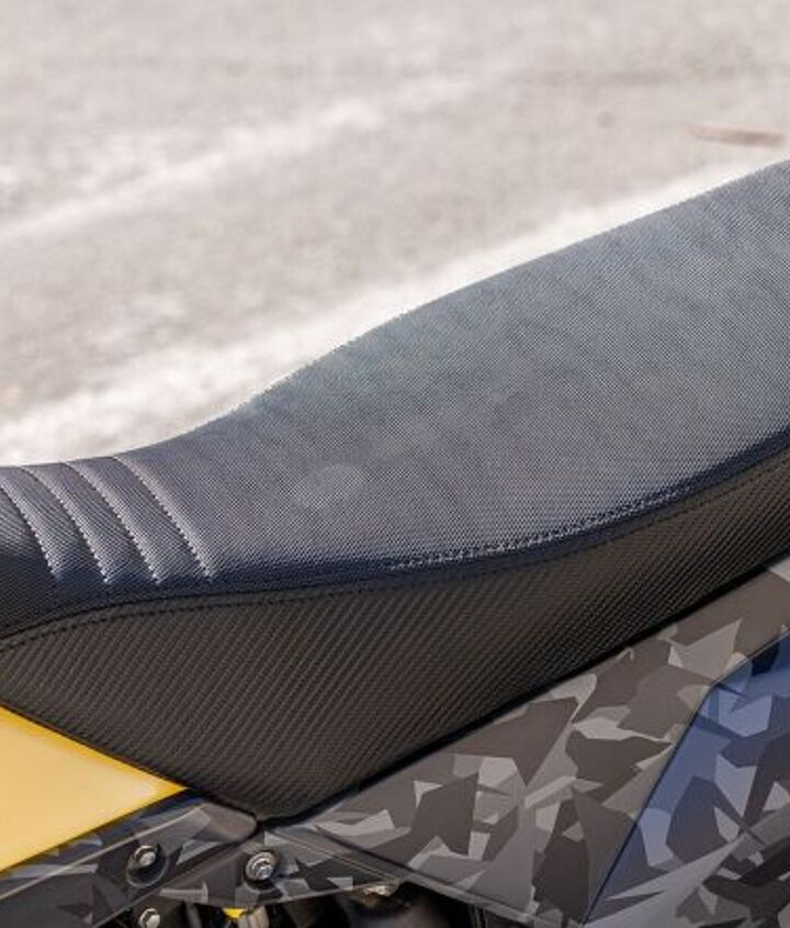 My first impression was that the seat was much firmer than I expected. It wasn’t uncomfortable. I’d just imagined it would be softer. The shape of the seat is such that, at the front by the tank, it maintains the stock narrowness to allow for easy movement while standing, but as you move rearward, the seat widens to give a broader perch for racking up the miles. Once I got out on the road, the wider rear portion of the seat impressed me with how much more comfortable it was, despite the firmness. I could easily move around, and I no longer felt like my butt cheeks were simultaneously on both edges of the seat. After a few rides, the foam has already broken in a little, so I expect it to continue to soften up as I log more miles.