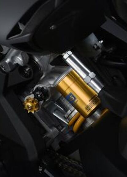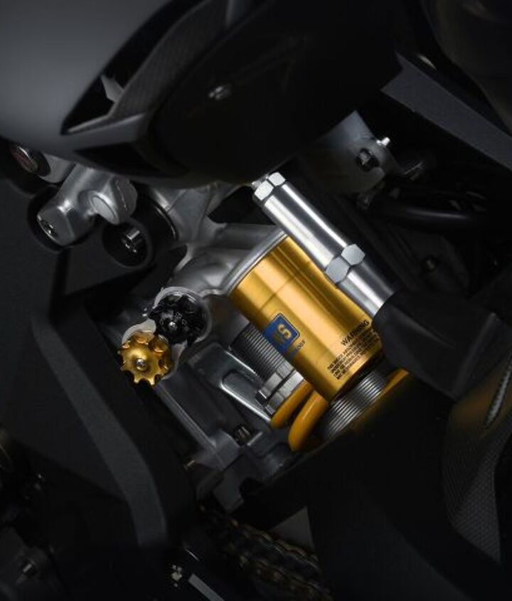 Top-drawer Öhlins shock absorbers provide maximum performance on both road and track. The USD NIX 30 TiN-coated 43 mm diameter fork features separate manual adjustment of compression (left side) and rebound (right side) and also allows adjustment of spring pre-load. In addition to outstanding technical characteristics, the fork on the
