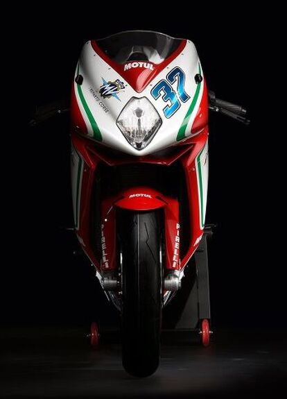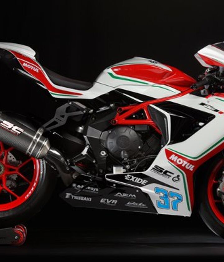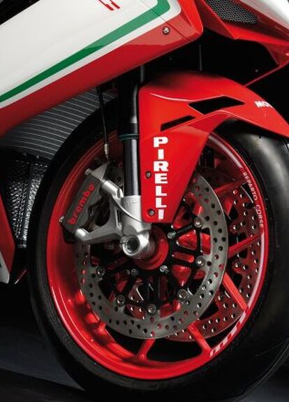 The limited edition F3 RC motorcycles comes with a top-drawer kit that boosts motorcycle performance even further, effectively making it identical to the race version in terms of equipment and appearance. In just a few simple steps, the kit can be used to transform the F3 RC road motorcycle into a perfect track day machine. The titanium exhaust system (for race use), with carbon fiber silencer, is supplied by SC Project and comes complete with carbon fibre heel guard and aluminum silencer support brackets. Also included in the kit is the electronic control unit (for race use only) with a dedicated mapping to maximise the increase in performance (133 hp at 14,570 rpm on the F3 675 RC and 153 Hp at 13,250 rpm on the F3 800 RC). The rear seat cowl (for single- seat use) adds a touch of eye-catching style, as do the machined from billet brake and clutch levers. The included rear sprocket is for race track gearing, while the rear stand and motorcycle cover are for maintenance purposes. As proof of its uniqueness, each RC comes with its own certificate of origin.