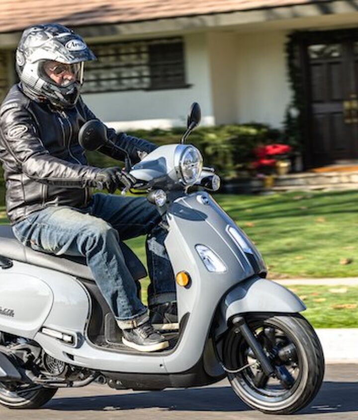 It looks like we’re going for that Vespa look, and why not, since the Vespa is pretty much the Ferrari of scooters. Actually, the Vespa GTS300 is, but the SYM’s 169cc engine puts it in the Vespa Primavera camp. Vespa rates that 155cc thumper at 12.5 horsepower and 9.1 pound-feet; SYM says its motor makes 11.8 hp and 9.2 lb-ft.