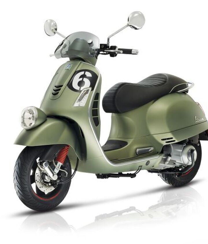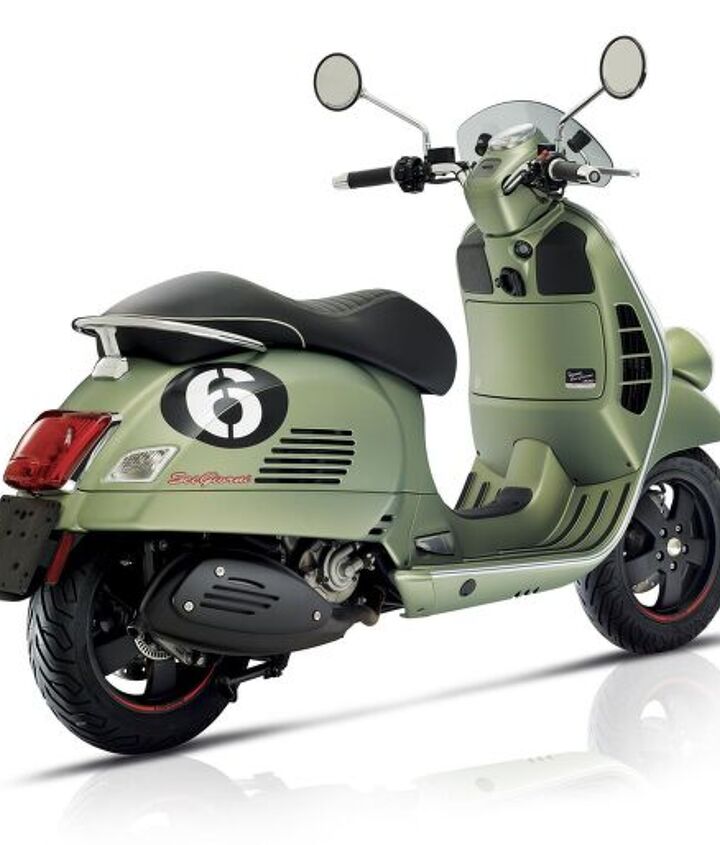 The new Vespa ‘Sei Giorni’, which translates to ‘six days’, is based on the current GTS model and blends styling cues reminiscent of the 1951 Sport Squadra Corse with the most powerful engine and advanced technology Vespa has to offer. Complete with a 278cc motor producing almost 21 horses and over 16 lb-ft of torque paired with black number plates and other race inspired accents, the Sei Giorni is the sportiest model Vespa offers.