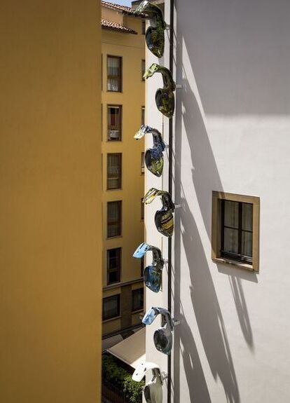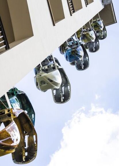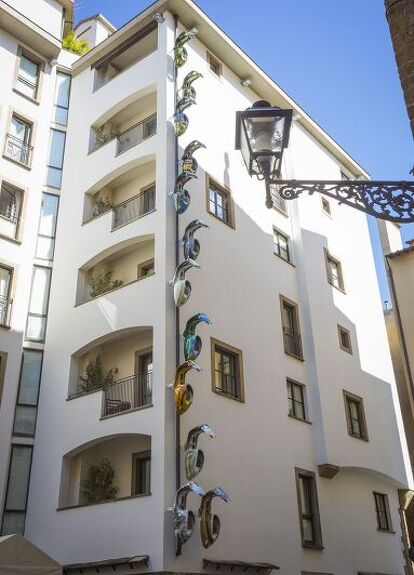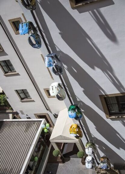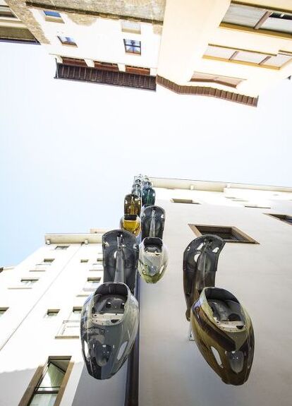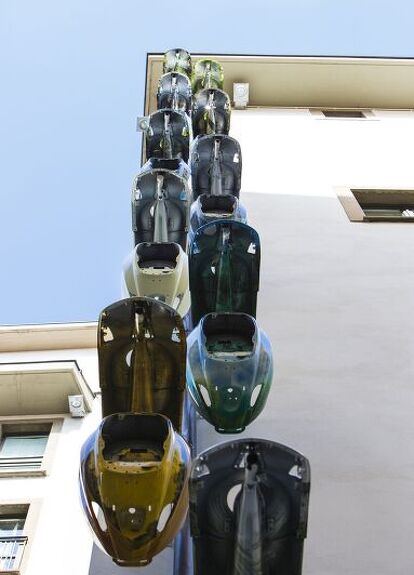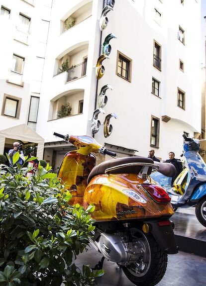If you find yourself visiting Italy this year, be sure to stop in Florence to see a line of Vespas climbing the wall of the Gallery Hotel Art.