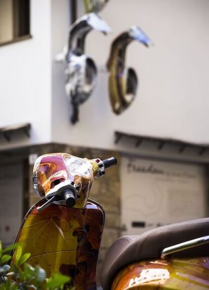 “Vespa is a profoundly urban brand that goes well beyond its function as an elegant and easy means of transportation for daily mobility,” says Davide Zanolini, Piaggio Group Marketing and Communication Director “We like to think that it ‘furnishes and dresses’ the city. Vespa is one of the few physical objects that represent ‘Made in Italy’, simply because ‘Made in Italy’ embodies the main values: creativity, innovation, quality, strong and distinctive personality. Values that Vespa takes everywhere in the world in an authoritative and credible way and that we find in the partnership with Lungarno Collection and in the innovative installation conceived of by Simone D’Auria.”